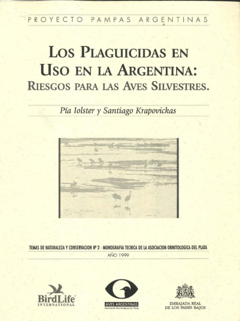 Los plaguicidas en uso en la Argentina: Riesgos para las aves silvestres.El propósito de este trabajo es destacar el peligro que el mal uso y abuso de los plaguicidas representa tanto para la vida silvestre como para los seres humanos. Asimismo, se busca contribuir a la identificación de plaguicidas potencialmente peligrosos para las aves silvestres y generar recomendaciones acerca de su uso correcto, moderado y seguro en Argentina. |