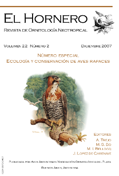 Editorial Ecología y conservación de aves rapaces en Argentina Trejo, Ana; Bó, María Susana; Bellocq, María Isabel; Lopez de Casenave, Javier Artículos Identificación de especies y áreas prioritarias para el estudio de la reproducción de aves rapaces de Argentina Trejo, Ana Ecología trófica de Falconiformes y Strigiformes: tiempo de síntesis Bó, María Susana; Baladrón, Alejandro V.; Biondi, Laura M. Medicina de la conservación, enfermedades y aves rapaces Saggese, Miguel D. Respuesta de las aves rapaces al uso de la tierra: un enfoque regional Filloy, Julieta; Bellocq, M. Isabel Pérdida y fragmentación de la Selva Paranaense: efectos sobre las aves rapaces diurnas Zurita, Gustavo A.; Bellocq, M. Isabel Biología y conservación del Cóndor Andino (Vultur gryphus) en Argentina Lambertucci, Sergio A. Biología y conservación del Águila Coronada (Harpyhaliaetus coronatus) en Argentina Maceda, Juan José Ecología y conservación del Aguilucho Langostero (Buteo swainsoni) en Argentina Sarasola, José Hernán; Galmes, Maximiliano Adrián; Santillán, Miguel Ángel Bibliografía comentada sobre aves rapaces de Argentina Trejo, Ana