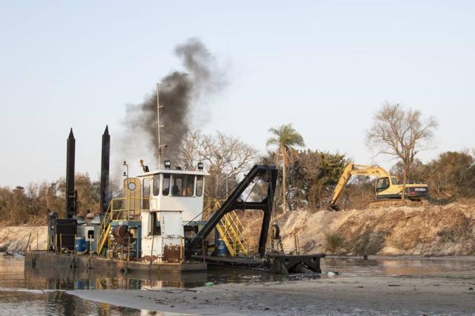 Luego de recorrer la zona en kayak, Paulino Moreno, vecino de la zona y miembro de un grupo local vinculado con los deportes náuticos, describe: “La draga estacionaria, montada sobre una barcaza de grandes dimensiones, realiza el trabajo de succión de material del fondo arenoso, para ser arrojado a través de cañerías hasta unos 50 metros sobre las orillas. En esta acción son necesarias dos retroexcavadoras sobre orugas que trabajan en ambas márgenes construyendo un camino de sirga de unos veinte metros de ancho, y otro par más doscientos metros atrás que “acomoda” y “nivela” el material arrojado sobre el monte. Para facilitar el paso por los distintos desniveles y pequeños canales de desagües de lagunas o vertientes, la contratista improvisa “puentes” con los restos de los troncos y ramas de la deforestación sobre las que se cruzan las orugas, tapando el normal desagüe de estos espejos de agua. En la actual bajante histórica de los ríos, el calado del Riachuelo no supera el medio metro. En esta situación la draga debe ser virtualmente arrastrada con cadenas sobre el cauce para profundizar hasta un metro y medio el fondo. El avance de 100 metros diarios destruye y deforesta todo a su paso arrojando los restos de vegetación a un costado formado pilas de troncos y ramas de desecho de lo que alguna vez fuera bosque nativo (...). Las maquinarias utilizadas requieren para su funcionamiento grandes cantidades de combustible y aceites, se han verificado sobre las aguas del río grandes manchas de aceite y combustibles provenientes de la obra, ya sean de mantenimiento mecánico o quizá de pérdida de sus tanques de combustible, cualquiera sea el caso es una contaminación que afecta seriamente la vida acuática en este río que a la fecha tiene muy poca agua en su curso.”