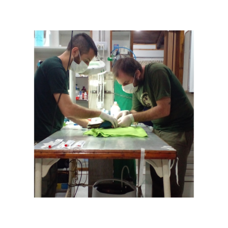 En esta etapa del proyecto, hicimos el chequeo general de cada ejemplar con rayos X y muestras de sangre para descartar la presencia de enfermedades contagiosas, confirmar sexado y genética. Dada la importancia del Maracaná lomo rojo como Monumento Natural Provincial, el Instituto Misionero de Biodiversidad (IMiBio) ha preservado en el Biobanco de la Provincia de Misiones parte del material genético obtenido.