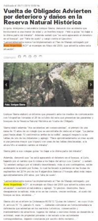 El guía, intérprete y naturalista Enrique Sierra, denunció dos accidente que involucraron a una menor de edad y un hombre mayor. Pidió a guías "no bajar a la última parte del mirador". Además señaló que "se está agravando el deterioro en el bosque", por "falta de suelo" y cargó contra el Ejecutivo: "Lamentablemente nunca fue implementado el Plan de Manejo entregado por Aves Argentinas/AOP al municipio en Mayo del 2005, que advertía sobre esta situación".