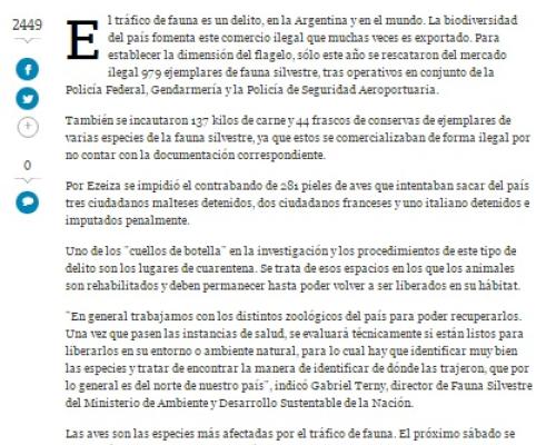 Noviembre 22 de 2015. El tráfico de fauna es un delito, en la Argentina y en el mundo. La biodiversidad del país fomenta este comercio ilegal que muchas veces es exportado.