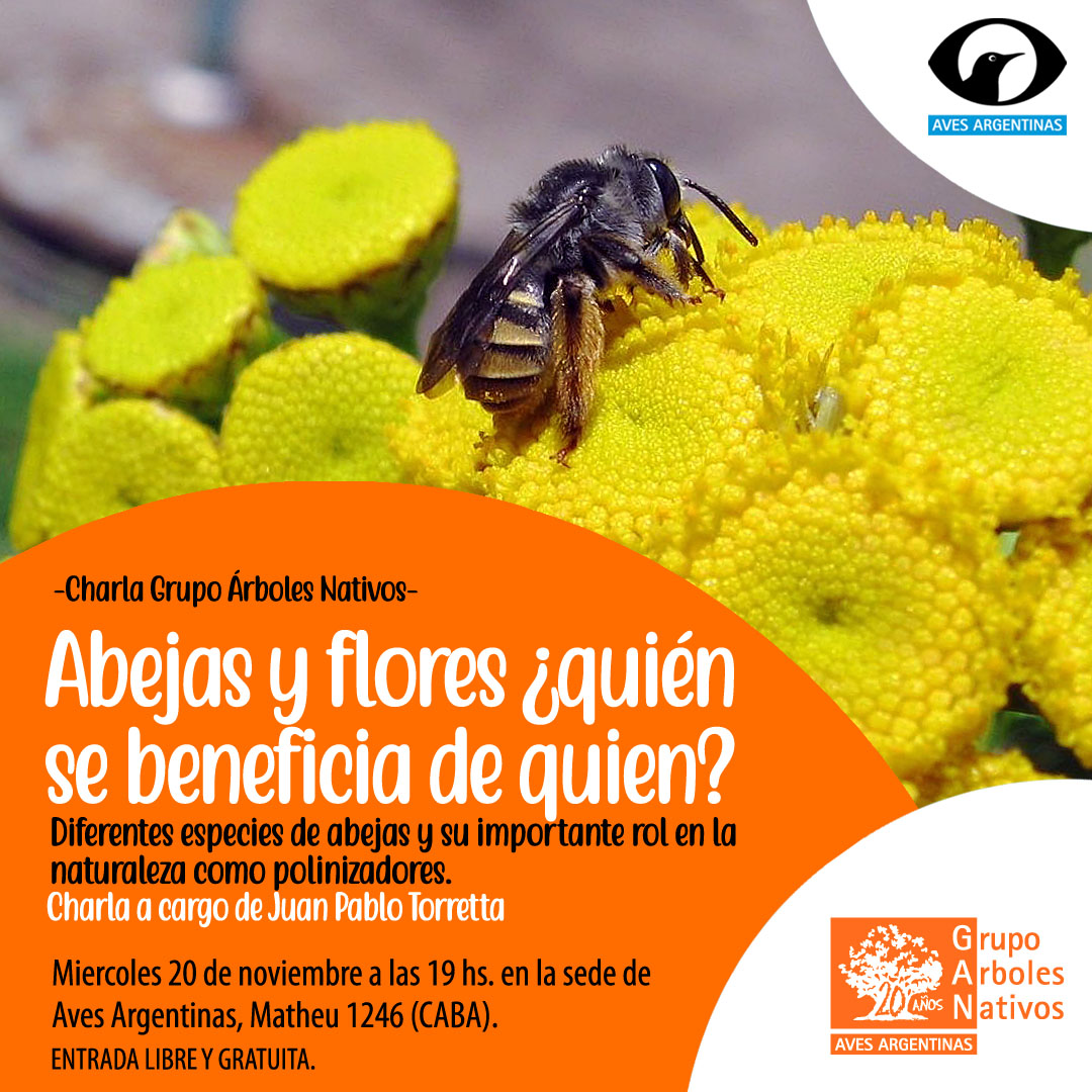 El miércoles 20 de noviembre a las 19 hs nos visitará Juan Pablo Torretta, quien nos contará sobre las características de diferentes especies de abejas y su importante rol en la naturaleza como polinizadores. Vamos a conocer el mundo de una de las especies más importantes del planeta.