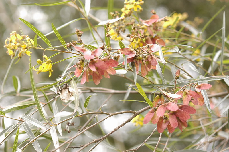 Otros nombres: Heteropteris glabra Hábito: arbusto Altura: 1 a 3 Crecimiento: Intermedio Follaje: Persistente Atractivo: Frutos alados rojizos Riego: medio Sol: Pleno Arbustos Heteropterys glabra