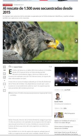 El tráfico de fauna es un delito difícil de erradicar en Córdoba. Desde 2015 hasta la fecha, la Policía Ambiental del Ministerio de Ambiente, Agua y Servicios Públicos de la Provincia ha realizado cerca de 150 intervenciones, la mayoría de ellas relacionadas con aves.
