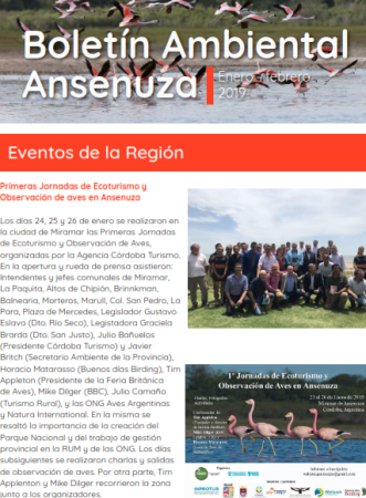 El Boletín Ambiental Ansenuza es realizado por el Programa Tierras de Aves Argentinas para fortalecer vinculación, comunicación y difusión de actividades, noticias y eventos sobre conservación, naturaleza y ecoturismo del futuro Parque Nacional Ansenuza.