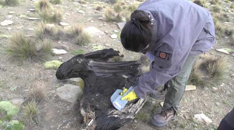 A casi 5.000 m de altitud, el equipo de trabajo evaluó la distribución de los cadáveres, posicionándolos con GPS. Se verifico con lector de microchip que ninguno estuviera marcado con anterioridad. Se comprobó que algunos presentaban en sus patas un polvo solido, de color rosado, del cual se tomaron muestras para estudios toxicológicos. Se encontraron en total 19 (diecinueve) cóndores muertos, distribuidos en un área pequeña de no más de 3000 m2. A pesar del deterioro de los cadáveres, se identificaron 8 machos y 9 hembras. En base a la coloración del plumaje, se determinaron 6 adultos, 7 sub adultos y 6 juveniles. Se destaca que en el lugar se encontraron además restos de Vicuña (Vicugna vicugna) y zorro colorado (Lycalopex culpaeus). Se completaron estudios de necropsia en el centro de atención de la fauna autóctona de la provincia de Jujuy (CAFAJU), donde se pudo comprobar que los cóndores habían comido vicuña, estimándose que la muerte ocurrió luego de la ingesta.