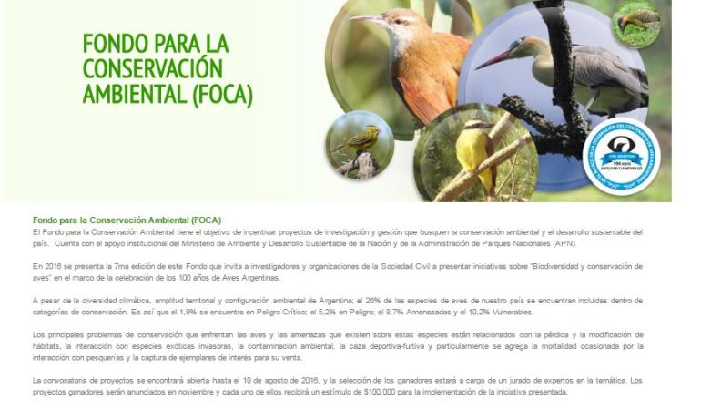 En 2016 se presenta la 7ma edición de este Fondo que invita a investigadores y organizaciones de la Sociedad Civil a presentar iniciativas sobre “Biodiversidad y conservación de aves” en el marco de la celebración de los 100 años de Aves Argentinas.