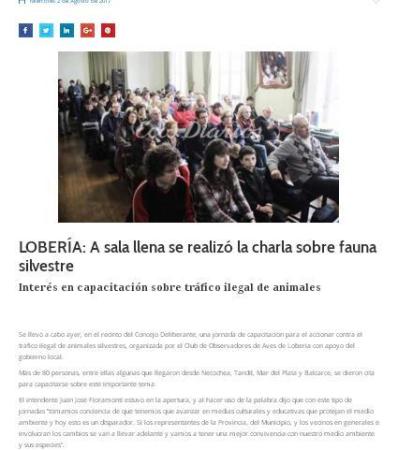 Se llevó a cabo ayer, en el recinto del Concejo Deliberante, una jornada de capacitación para el accionar contra el tráfico ilegal de animales silvestres, organizada por el Club de Observadores de Aves de Lobería con apoyo del gobierno local.