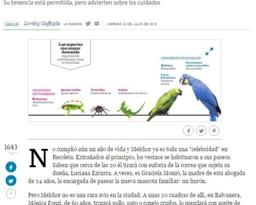 Julio 22 de 2016. Su tenencia está permitida, pero advierten sobre los cuidados. La Dirección Nacional de Fauna (DNF) es la encargada de otorgar permisos y fiscalizar la importación o el acopio de las especies silvestres, siempre provenientes de criaderos acreditados del exterior o del interior del país.