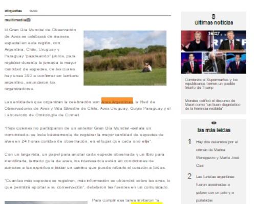Para notas de prensa, información, pedido de utilización del logo o fotografías, comunicarse al 4943-7316 (int. 103), prensa@avesargentinas.org.ar