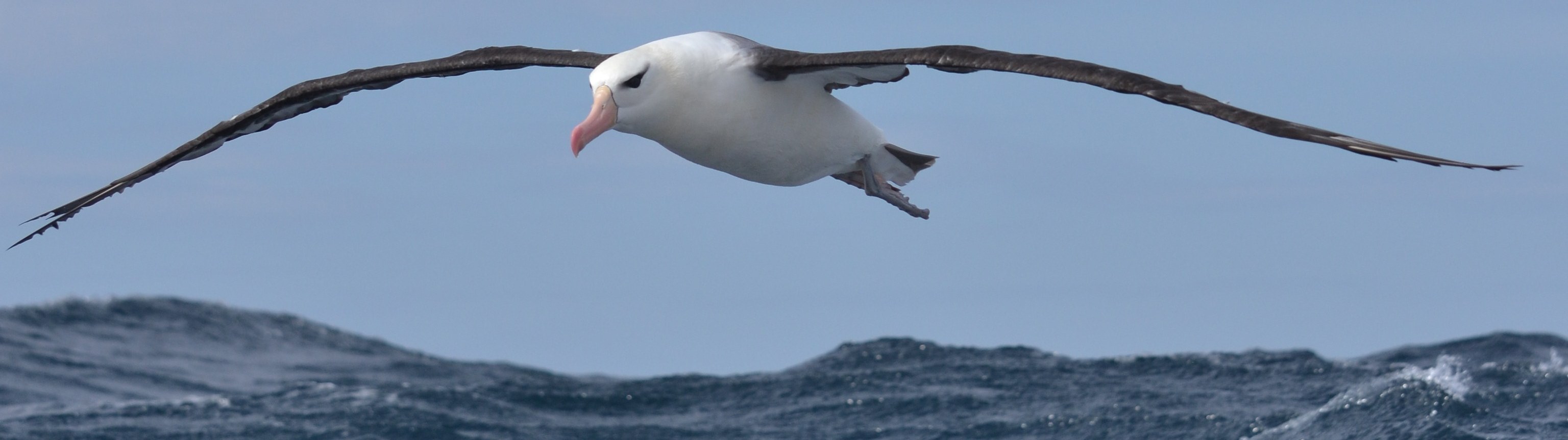 El albatros ceja negra (Thalassarche melanophris) es un ave pelágica que habita los océanos y tiene distribución circumpolar, desde aguas subtropicales hacia aguas polares (ver Mapa). En su rostro de color blanco se destaca una ceja negra oscura, puede vivir hasta 50 años y es uno de los albatros más pequeños con una envergadura promedio de 2,2 m.